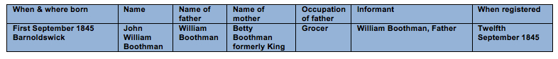 John William Boothman was born on 1st September 1845 in Barnoldswick.