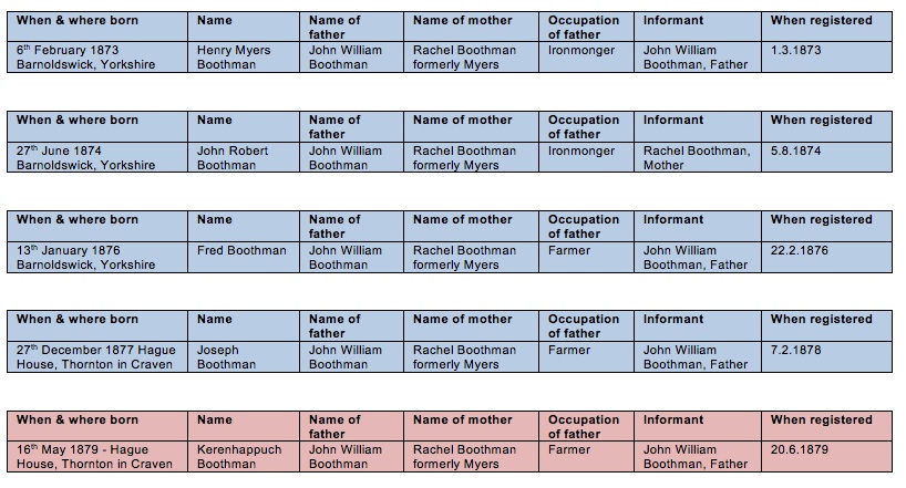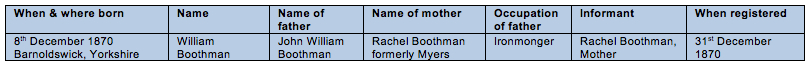 Although 6 of Rachel’s children are still at home, I cannot find Henry Myers Boothman in 1891 but I have located his marriage in 1894.
