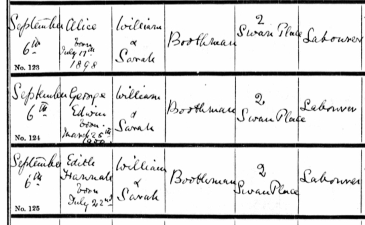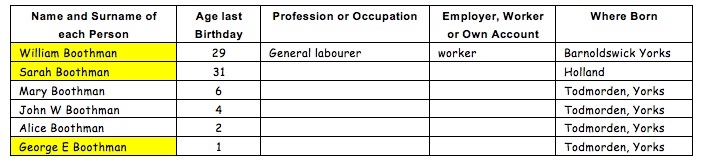 In 1901 the Boothman family was living in 4 rooms at number 6 Swan Place and the key details are as follows:
