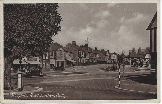 This contemporary postcard is marked with an arrow and Muriel has written on the back - We lived here Leirum House (Muriel backwards) from Oct '46 to November '47 whilst Dave was at University College Leicester.