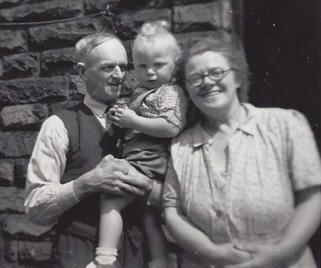 Photograph shows Michael with his grandparents Mary and Jack Carpenter outside their home in Todmorden. Michael died of cancer in 2014 at the age of 66.September 1947 - Dave (22)
