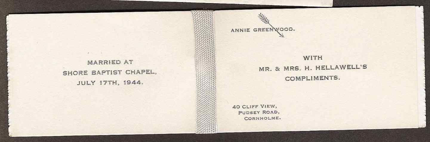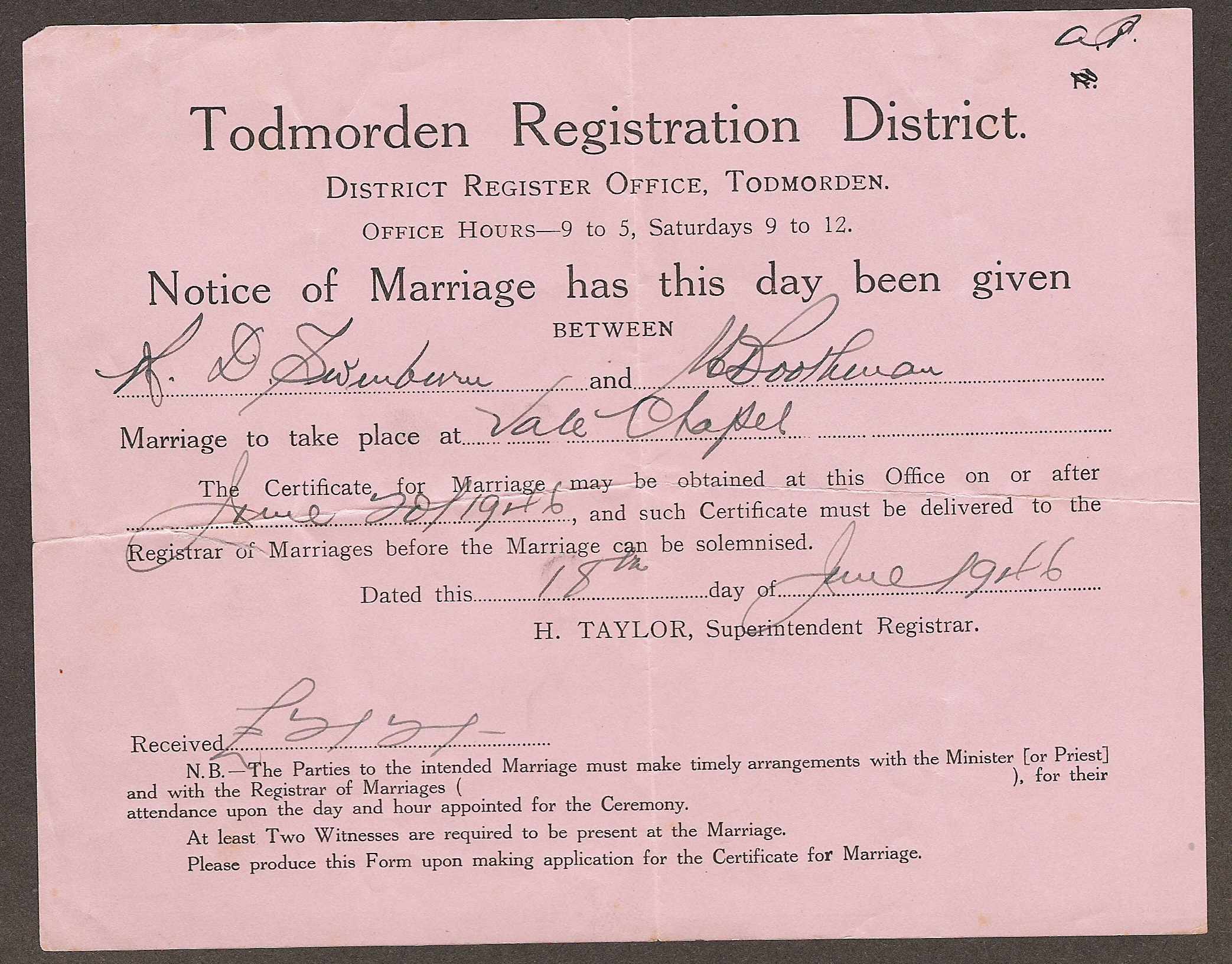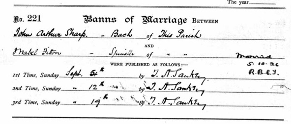 It has been a year for weddings. Two of Edwin's sisters were married in August and today my sister Mabel was married to John Arthur Sharpe. They were married at St Michael and All Angels Chapel in Cornholme where the Banns were read on 3 Sundays in September.