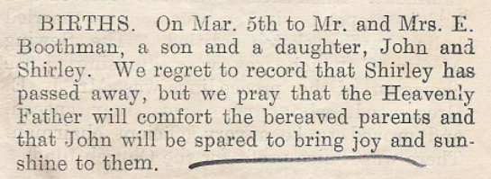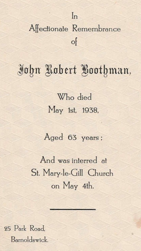 For details of the marraige and a continuation of the story of the lives of The Boothman family - now intertwined with the lives of the Swinburn family - see the separate section Swinburn-Boothmans - under development.