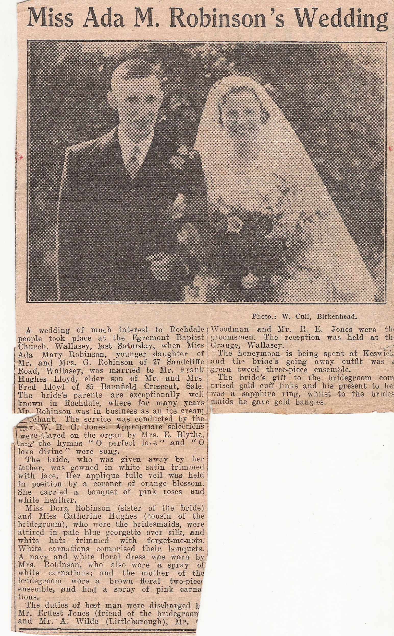 Edwin and I were married today at Shaw Chapel. We have come to Blackpool for our honeymoon. The train we came on was packed with jubilant Bolton supporters who had been to the F A Cup match.