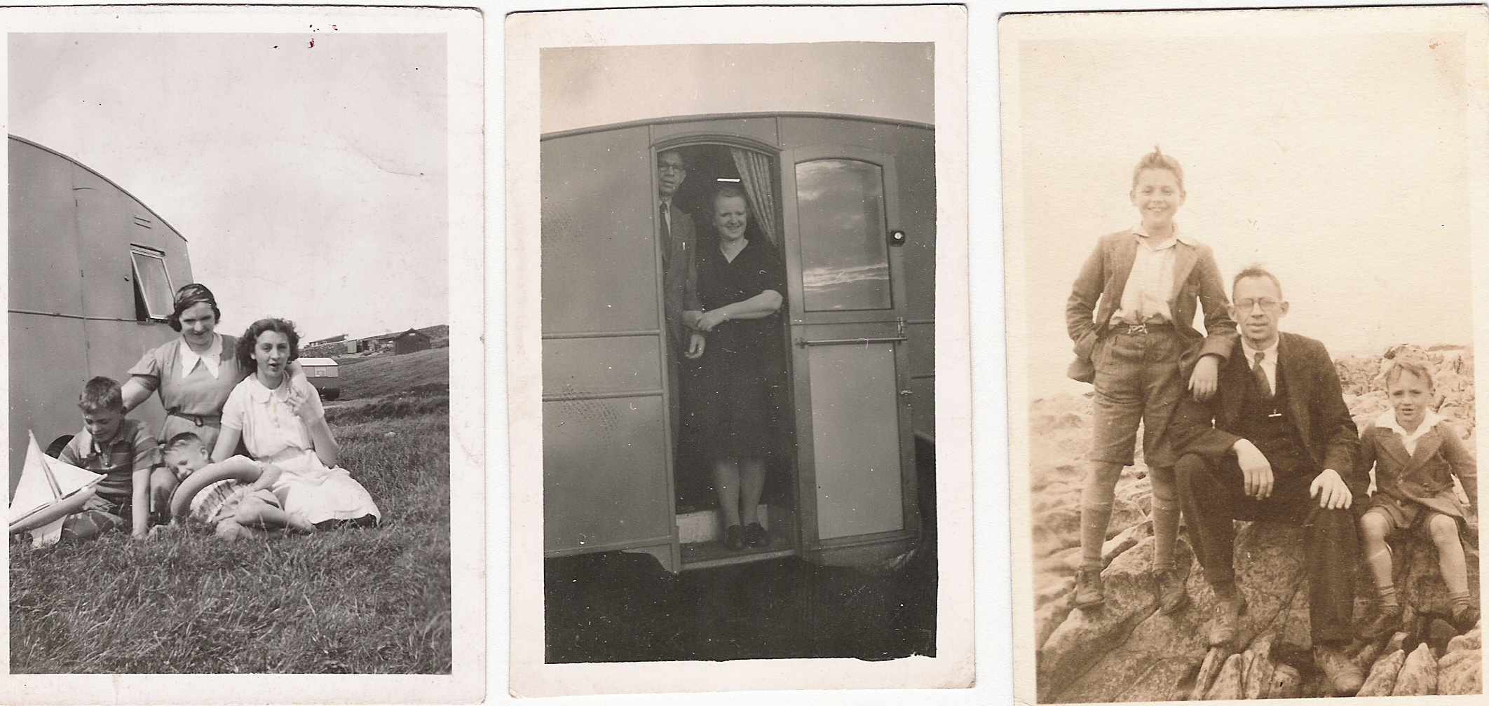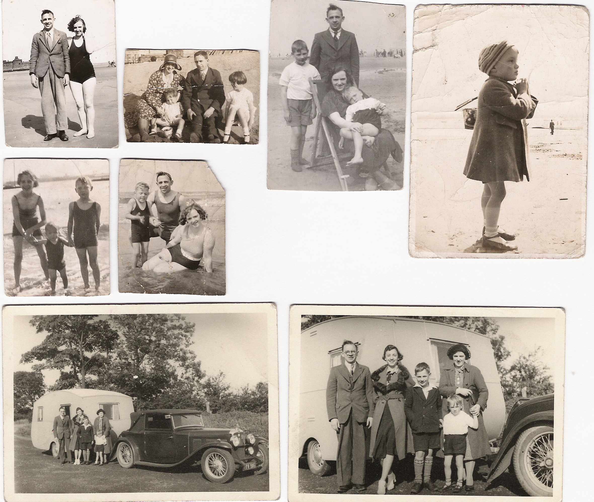 This is the only picture I have that shows the whole family together. It is a holiday snap from about 1938 showing Edwin (38), Muriel (14), Harry (10), John (4) and Bertha (39) standing in front of their holiday caravan in Heysham.