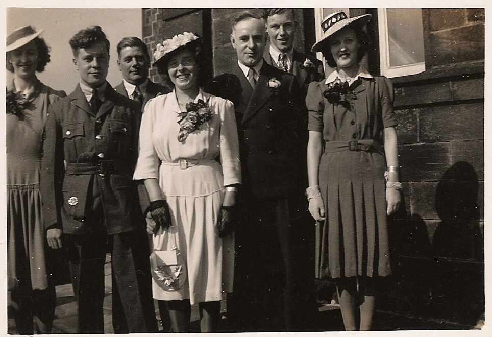 I was bridesmaid at the wedding of my best friend Anne Greenwood. She married Harry Hellawell. Anne’s mum made my dress from some cloth that Dad had the foresight to buy at the start of the war (see April 1940). Cloth is rationed now.