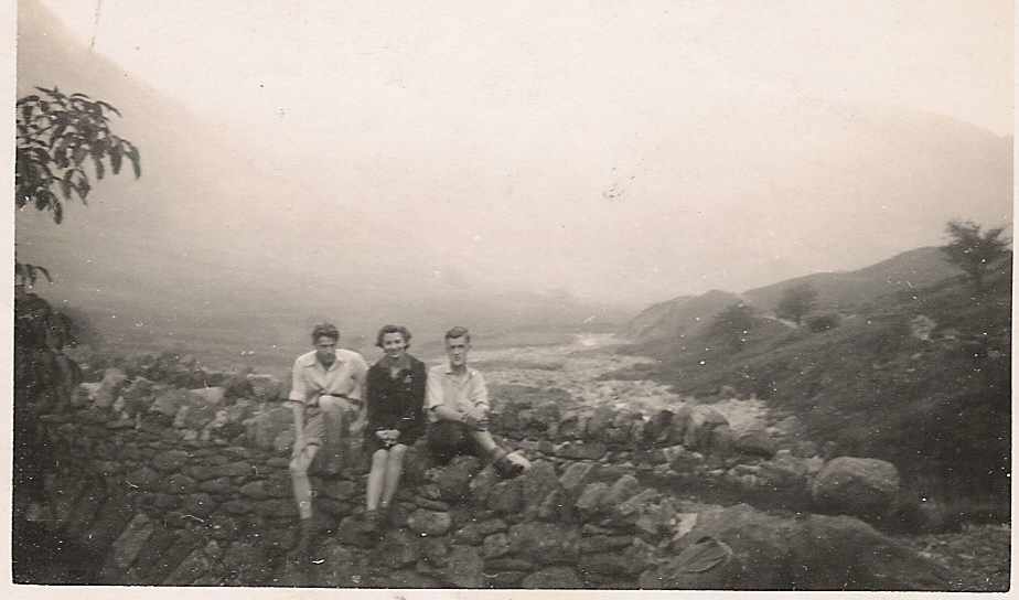 The photograph shows Muriel with Alan and Dave (right) in the lake District - probably taken on this holiday. Muriel also kept a postcard image of Blacksail Bothy dated on the back 31st July 1944. This was clearly a significant event - presumably the first night they had spent together.