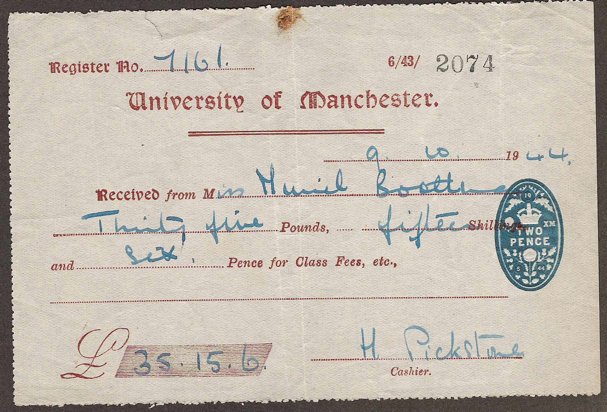 Exchange of love letters continued almost daily and the addresses tell some of the story of their lives. Two of the envelopes are re-addressed to Edinburgh in Edwin’s hand and after 8th April ‘M.P.S.’ is proudly added after 'Miss M. Boothman'. In May 1946 Muriel was again working at Boots in Rochdale.