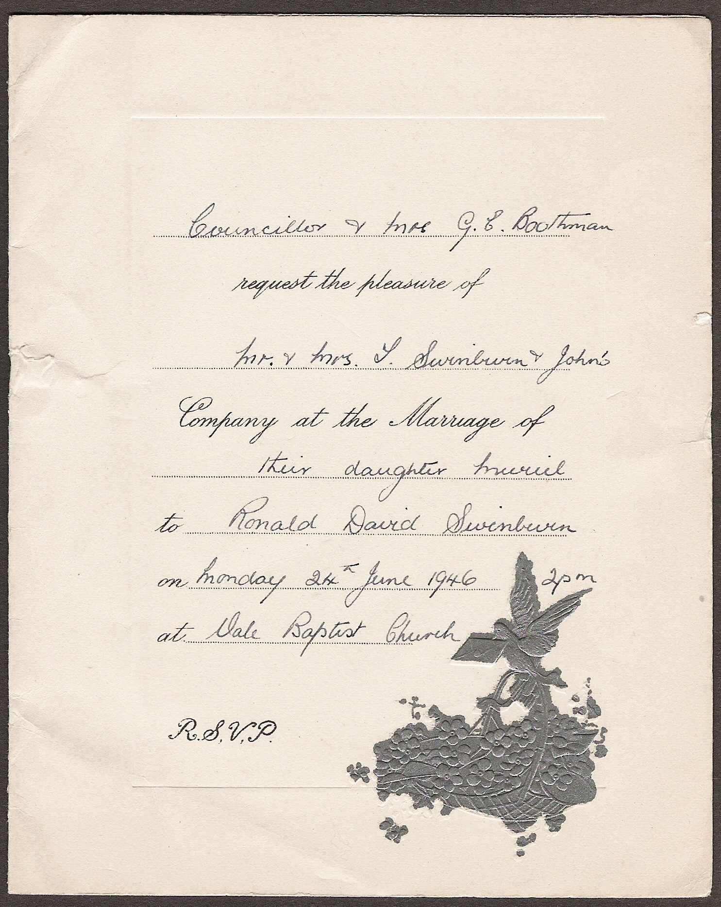The wedding invitations have been sent. The banns go up on 18th June and a week later on 24th June 1946 we shall be man and wife.