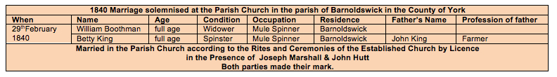 William Silverwood Boothman & Betty King - Marriage Feb 29th 1840