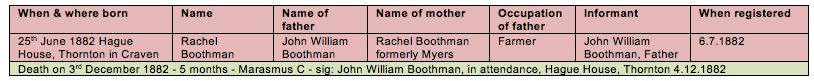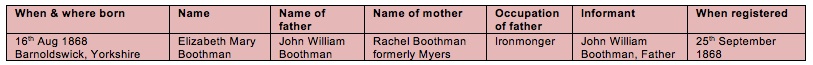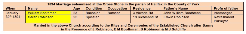 Although 6 of Rachel’s children are still at home, I cannot find Henry Myers Boothman in 1891 but I have located his marriage in 1894.