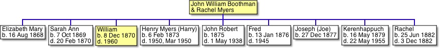The full family of William & Sarah is shown below. See the separate Robinson line for Sarah's ancestry.