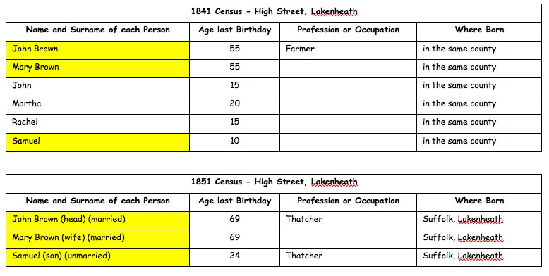 Census records for Samuel Brown in 1841 and 1851 are a good