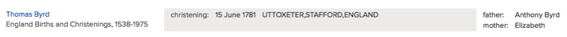 I also have a birth of Thomas Byrd in 1781 which fits but I can find nothing further back.