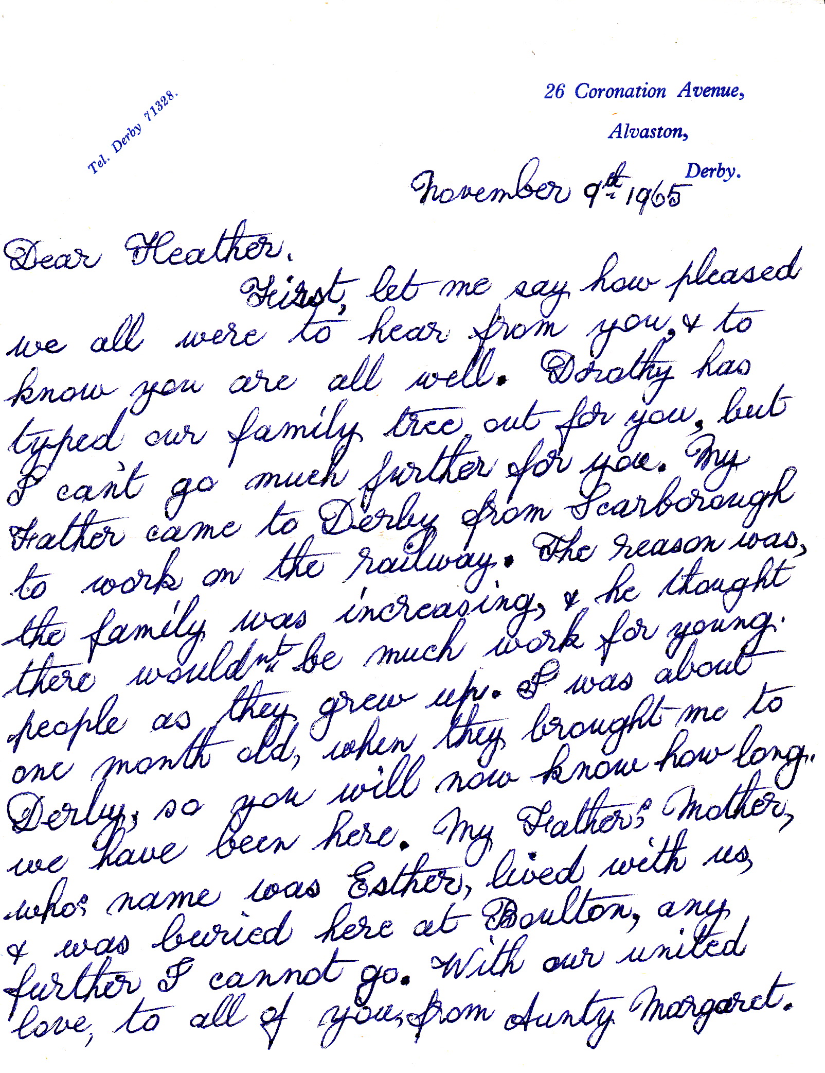 (Margaret Anne Swinburn b. 1889) whom I approached in 1965 when I was starting