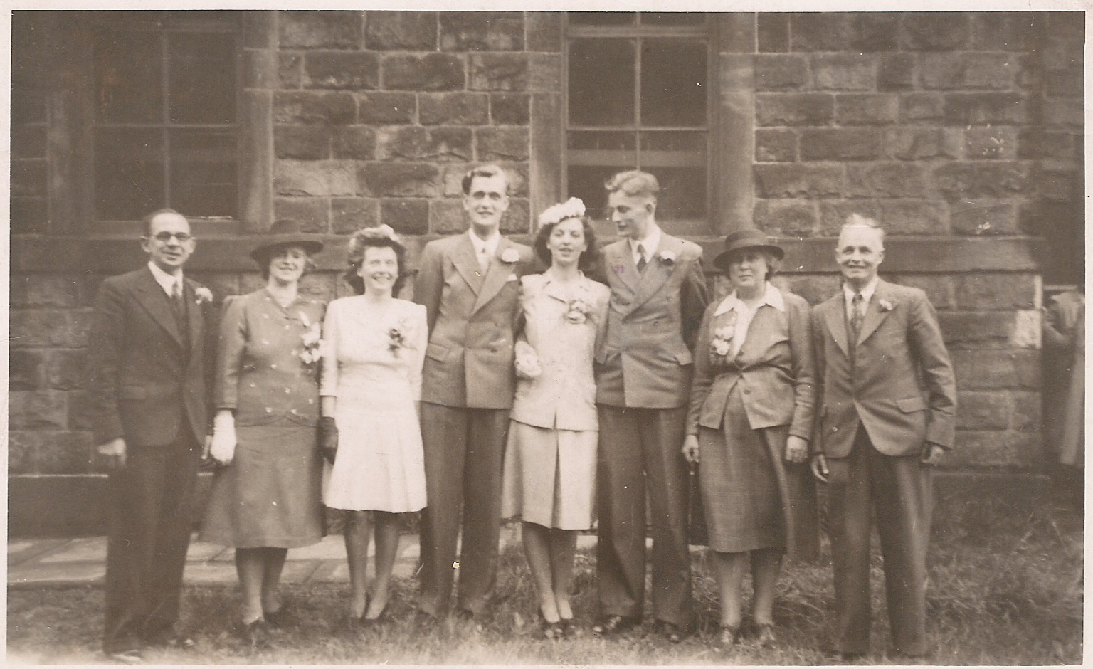 The photograph above shows (l to r) Edwin & Bertha Boothman (Muriel's parents), Anne Hellawell (bridesmaid), Dave & Muriel, Ray Swinburn (brother to Dave and Best Man) Margaret-May and Tom Swinburn (Dave's parents).
