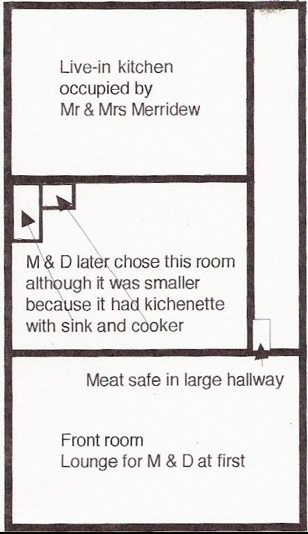 We are now quite comfortably settled in rooms with Mr and Mrs Meridew at 8, St James Terrace in Buxton. We have a bedroom on the top floor and at first we just had the front room of the house as a lounge, but when Edith and Doug moved out we asked if we could have the middle room which has a sink and a cooker, and this is a much better arrangement. The other tenant in the house is a nurse who has the other bedroom on the top floor and shares their living room with the Meridews. (We had made friends with Edith and Doug and spent time with them including, this spring, walking with them in the Goyt Valley. They are Buxton people and were on the council housing list and were lucky enough to get offered a prefab. I do envy them!)
