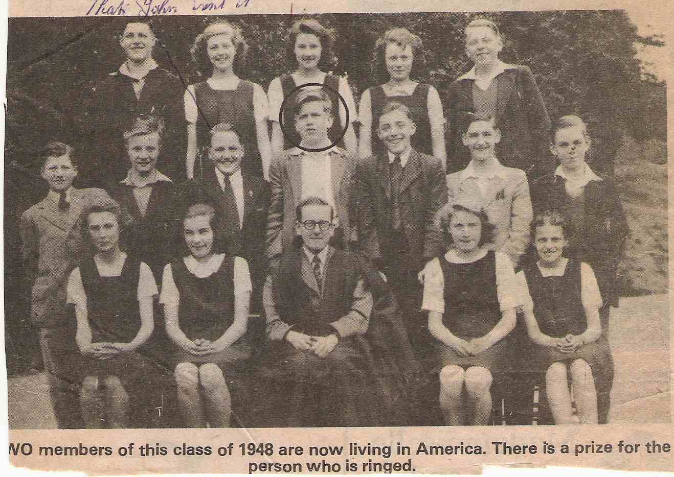 The photograph shows our other son, John, with his class at Tod Grammar School. He is third from the left in the middle row.