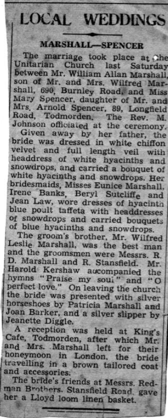 My cousin Alan was married to Mary Spencer. My cousin Eunice was bridesmaid.