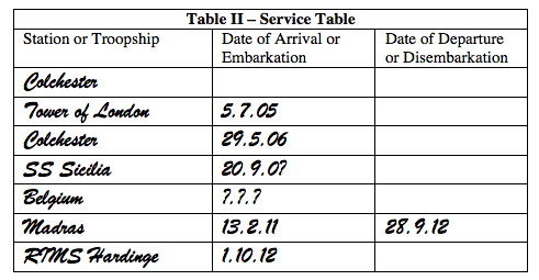 so lied that both his parents were dead!The service record page 4 gives some detail of Fred’s service. He enlisted at Market Harborough on 20th August 1904